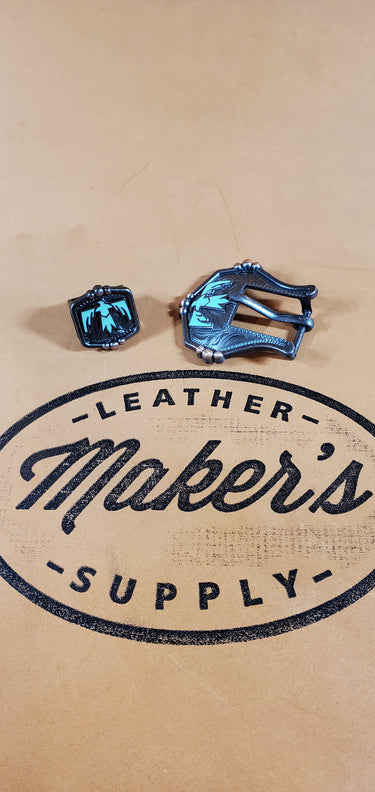 (173) Turquoise Eagle 3/4" Buckle and Keeper