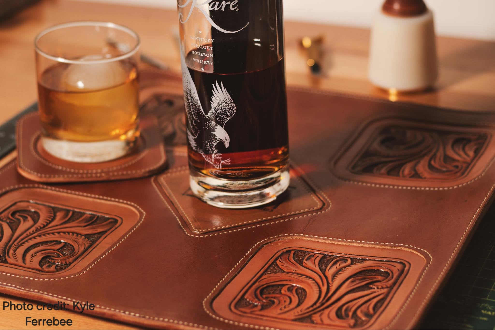 The Whitney Decanter Mat is a stunning piece once finished, whether you keep it clean and simple or go wild with tooling. It’s a great gift for weddings, groomsmen, or anyone who appreciates a well-built leather piece on their bar or table. You can hand sew or machine sew this one, so it’s perfect if you're wanting a skill-building project without too many complex curves.